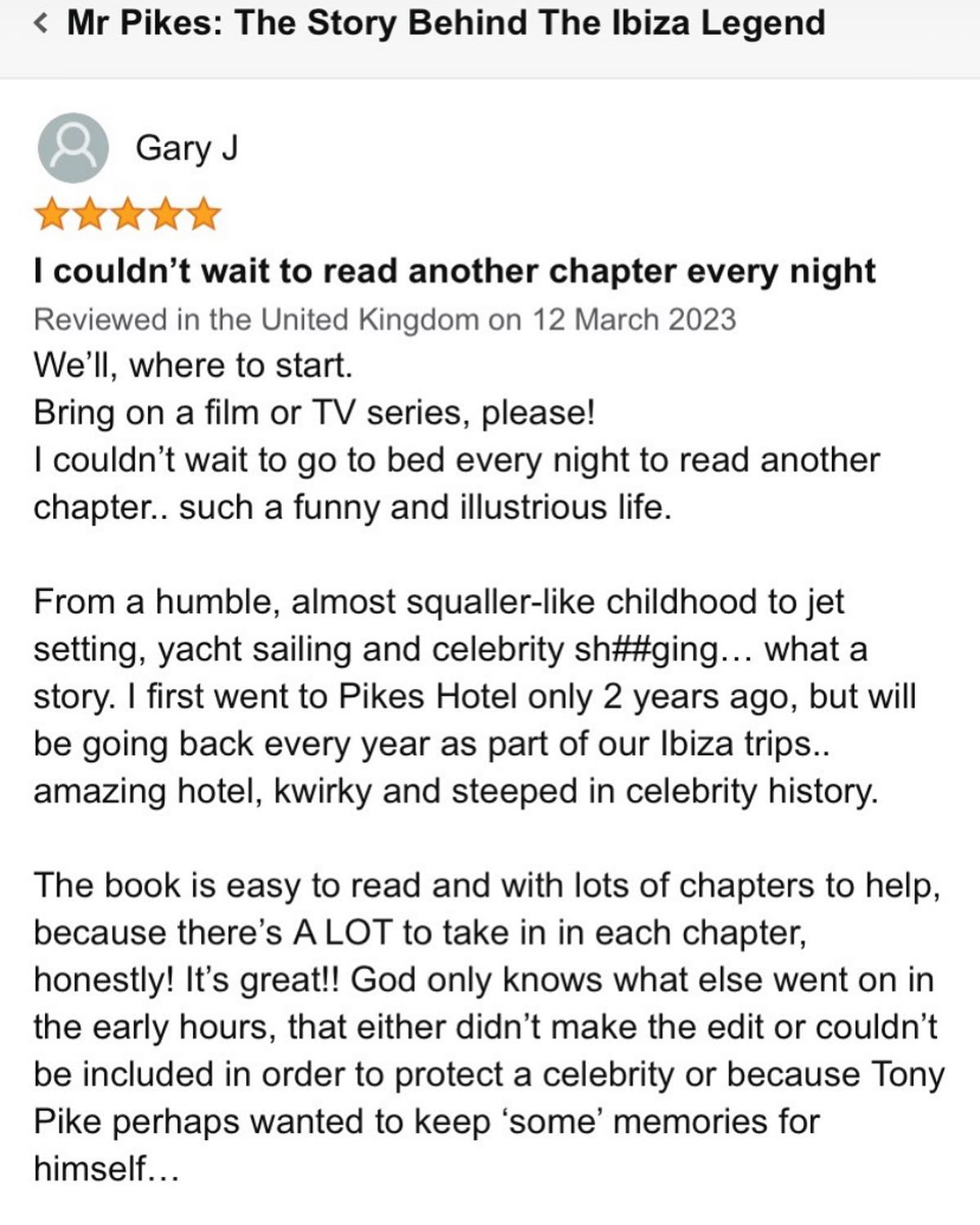 Every legend has imitators. But Mr. Pikes isn’t hearsay — it’s Tony’s story told in his own words.No ghostwriters. No “inspired by” versions. Just the unfiltered truth behind Ibiza’s most scandalous decade — straight from the man who built paradise and lived it to the fullest.